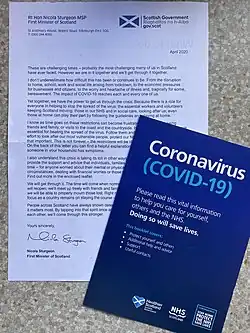 - ↑ "Workplace advice contained in new coronavirus guidance". gov.scot. 9 March 2020. Archived from the original on 3 June 2020. Retrieved 26 April 2020.