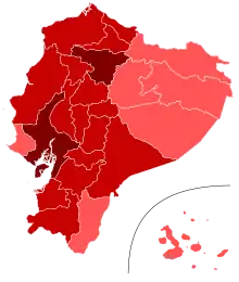 Ecuador was described in April 2020 as emerging as the "epicentre" of the pandemic in Latin America.[3] The Guayas Province was particularly strongly affected, with thousand of excess deaths reported compared to the figure for a normal period.[37] It was reported on 17 April 2020 that 10,939 people had died in six weeks since the start of March in the Guayas Province, compared to a normal figure of 3,000 for the province.[38]