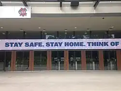 Residents were not to leave their homes except for essential shopping, exercise, caregiving, essential work, or participating in a professional sporting event. They were also limited to shop or exercise within five kilometres of their homes. During this time, face masks were mandatory at all times out-of-home, with all public gatherings banned, and all schools closed. As they accounted for the majority of UK variant cases, international arrivals into Victoria were also suspended.[42][43] All Australian states and territories placed travel restrictions upon Victoria.[47] Premier Andrews stated that these infections were "moving at a velocity that has not been seen anywhere in our country over the course of these last 12 months." Special dispensation was given to the 2021 Australian Open, which became crowdless effective 11:30 pm AEDT on 12 February in the midst of the night's final match (play was temporarily suspended at that time to remove all spectators from the court).[42][43][48]