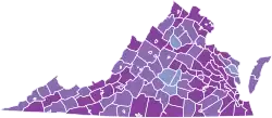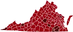 Several jurisdictions declared local states of emergency throughout March. The Code of Virginia permits officials of local jurisdictions that have issued declarations of local emergencies to, among other things, "control, restrict, allocate or regulate the use, sale, production and distribution of food, fuel, clothing and other commodities, materials, goods, services and resource systems which fall only within the boundaries of that jurisdiction and which do not impact systems affecting adjoining or other political subdivisions" without being under the supervision and control of the Governor.[25] Local emergencies were declared in Arlington County[26] and Madison County[27] on March 13; Alexandria[28] and Stephens City[29] on March 14; Prince William County,[30] Loudoun County,[31] Fauquier County,[32] Stafford County,[33] Falls Church,[34] Fredericksburg,[35] and Purcellville on March 16.[36]