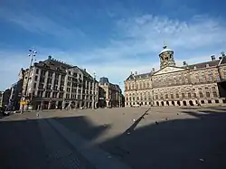 • an empty Dam Square in Amsterdam