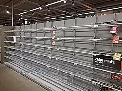 • empty shelves in a supermarket due to panic buying