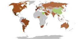 After over a month without recording any cases, the Philippines confirmed its first local transmission on March 7, 2020.[10][11] Since then, the virus has spread to the country's 81 provinces.[12] National and local governments have been imposing community quarantines since March 15, 2020, as a measure to limit the spread of the virus.[13] These include the Luzon-wide enhanced community quarantine (ECQ) that was implemented from March to May 2020.[b][14] On March 24, President Rodrigo Duterte signed the Bayanihan to Heal as One Act, a law that granted him additional powers to handle the pandemic. This was repealed by a follow-up law, the Bayanihan to Recover as One Act, which he signed on September 11.[15]
