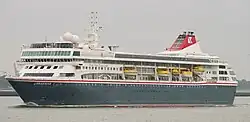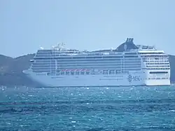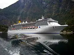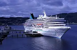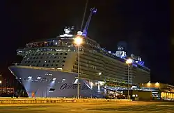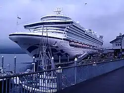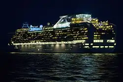↑ A cruise ship registered in Britain owned and operated by Princess Cruises (incorporated in Bermuda and with headquarters in Santa Clarita, California, US), a brand of Carnival Corporation & plc.