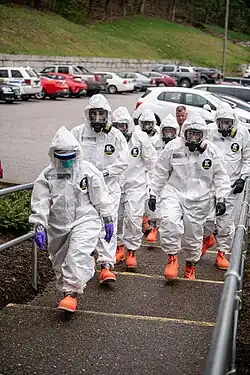 By March 12, all fifty states were able to perform tests, with a doctor's approval, either from the CDC or local commercial lab.[24] This was followed by the government announcing a series of measures intended to speed up testing. These measures included the appointment of Admiral Brett Giroir of the U.S. Public Health Service to oversee testing, funding for two companies developing rapid tests, and a hotline to help labs find needed supplies.[25] The FDA also gave emergency authorization for New York to obtain an automated coronavirus testing machine.[26]