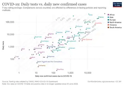 - ↑ Ritchie, Hannah (March 20, 2020). "Coronavirus Testing—Source Data". Our World in Data. Archived from the original on April 4, 2020. Retrieved June 29, 2022.