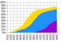The milestone of 60% population coverage of partial vaccination (at least 1 of 2 doses) was reached on 24 August 2021. On 23 September 250.3 thousand boosters had already been administered.[81] On 30 March 2022, 75% of the population was fully vaccinated.