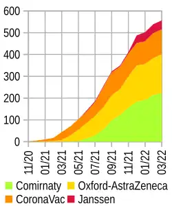 There is no deadline forecast for immunizing the country's entire population due to the lack of supplies for vaccine production[12] and also due to political disputes between the São Paulo state government and the Jair Bolsonaro government.[13][14][15]