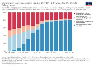 {{cite news}}: CS1 maint: unrecognized language (link) - ↑ "Données relatives aux personnes vaccinées contre la Covid-19" (Press release). Santé publique France. Archived from the original on 29 January 2021. Retrieved 30 January 2021.