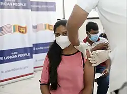 ![]() A Sri Lankan woman is vaccinated in 2021 as part of the COVAX initiative | |