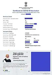 - ↑ "Covid-19 Vaccine Certificate: Here's how to download it from CoWin portal, Aarogya Setu app". The Financial Express. 10 May 2021. Archived from the original on 6 July 2021. Retrieved 16 July 2021.