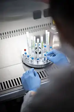 On 18 March 2020, scientists from the Defence Science and Technology Laboratory (Dstl) began providing hazard assessment, microbiological testing and operational analysis support to the Government dealing with COVID-19.[101] In late April, these scientists trialed mosquito repellent for its ability to fight coronavirus at their laboratory in Porton Down.[102] The laboratory also produced 21,000 units of fit test solution used to test the fit of face masks, in addition to speeding up the decontamination of vehicles used by ambulance services.[103]