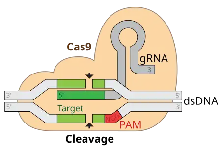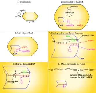 - ↑ Pickar-Oliver A, Gersbach CA (August 2019). "The next generation of CRISPR-Cas technologies and applications". Nature Reviews. Molecular Cell Biology. 20 (8): 490–507. doi:10.1038/s41580-019-0131-5. PMC 7079207. PMID 31147612.