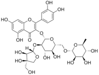 3-[(O-D-apio-β-D-furanosyl-(1→2)-O-[6-deoxy-α-L-mannopyranosyl-(1→6)]-β-D-glucopyranosyl)oxy]-2-(3,4-dihydroxyphenyl)-5,7-dihydroxy-4H-1-benzopyran-4-one Quercetin 3-O-b-d-apiofuranosyl-(1→2)-[a-l-rhamnopyranosyl-(1→6)]-b-d-glucopyranoside | |