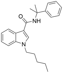 CUMYL-PICA (SGT-56) is an indole-3-carboxamide based synthetic cannabinoid. It is the α,α-dimethylbenzyl analogue of SDB-006.[1] It was briefly sold in New Zealand during 2013 as an ingredient of at the time legal synthetic cannabis products, but the product containing CUMYL-BICA and CUMYL-PICA was denied an interim licensing approval under the Psychoactive Substances regulatory scheme, due to reports of adverse events in consumers.[2] CUMYL-PICA acts as an agonist for the cannabinoid receptors, with Ki values of 59.21 nM at CB1 and 136.38 nM at CB2 and EC50 values of 11.98 nM at CB1 and 16.2 nM at CB2.[3][4]