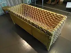 A cage bed is a bed with either metal bars or netting designed to restrain a person of any given age, including children, within the boundaries of the bed. They were once commonplace in Central and Eastern Europe and used to restrain disabled people, including autistic people and those with learning difficulties, epilepsy, hyperactivity and mental health problems in psychiatric institutions.[1][2][3] As of 2014, the Mental Disability Advocacy Center says cage beds are used in Greece, the Czech Republic and Romania.[4][5][6]