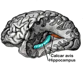 - ↑ Owen, CM; Howard, A; Binder, DK (December 2009). "Hippocampus minor, calcar avis, and the Huxley-Owen debate". Neurosurgery. 65 (6): 1098–104, discussion 1104-5. doi:10.1227/01.neu.0000359535.84445.0b. PMID 19934969. S2CID 19663125.