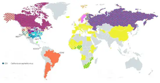 - ↑ Evans, Alyssa B.; Peterson, Karin E. (29 August 2019). "Throw out the Map: Neuropathogenesis of the Globally Expanding California Serogroup of Orthobunyaviruses". Viruses. 11 (9): 794. doi:10.3390/v11090794. ISSN 1999-4915.