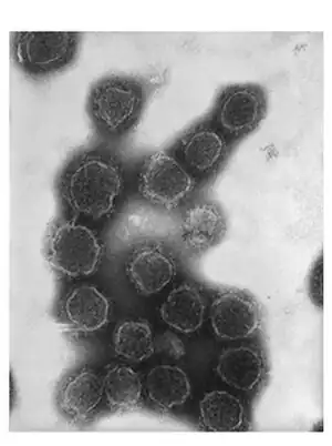 | Transmission electron microscopy photograph of California encephalitis virus virions | |