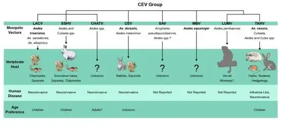 California encephalitis orthobunyavirus belongs to the Bunyavirales order of viruses. The La Crosse Virus from the same genus is also a common cause of encephalitis in the United States. Other viruses with similar disease symptoms but genetically unrelated include: Saint Louis encephalitis and West Nile virus.[3][4][5]