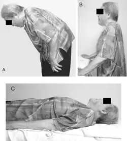 - 1 2 3 4 Azher, Shaheda N.; Jankovic, Joseph (2005-08-09). "Camptocormia: pathogenesis, classification, and response to therapy". Neurology. 65 (3): 355–359. doi:10.1212/01.wnl.0000171857.09079.9f. ISSN 1526-632X. PMID 16087897. S2CID 24603602.