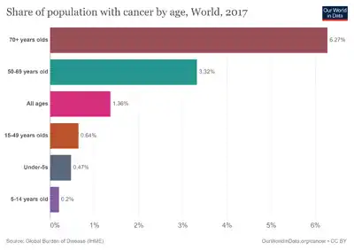 - ↑ World Health Organization (12 September 2018). "Cancer". Cancer: Fact Sheet. Archived from the original on 2018-04-28. Retrieved 29 November 2021.