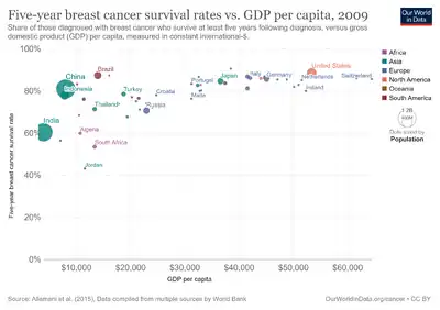 - ↑ 3.0 3.1 "Breast Cancer Survival Rates & Statistics". www.cancer.org. Archived from the original on 2020-05-01. Retrieved 2017-04-21.