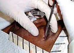 A canthotomy involves cutting the canthus, often performed to release excessive orbital pressure (i.e., from orbital hemorrhage or infection).[4]