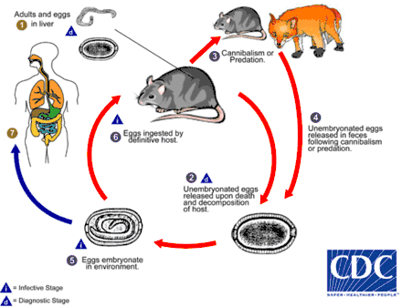 This parasite can be fatal in humans, as transmission and survival of the parasite depend on death of the Definitive host in order for the eggs to reach soil and water to embryonate.[10]