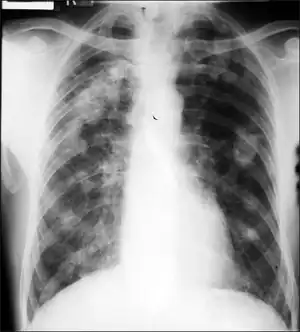 Caplan's syndrome (or Caplan disease or rheumatoid pneumoconiosis[1]) is a combination of rheumatoid arthritis (RA) and pneumoconiosis that manifests as intrapulmonary nodules, which appear homogeneous and well-defined on chest X-ray.[2]