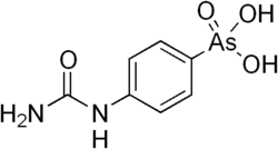 Carbarsone is an organoarsenic compound used as an antiprotozoal drug for treatment of amebiasis and other infections.[1][2][3] It was available for amebiasis in the United States as late as 1991. Thereafter, it remained available as a turkey feed additive for increasing weight gain and controlling histomoniasis (blackhead disease).[4][5]