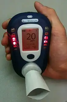 Breath CO monitoring offers an alternative to pulse CO-oximetry. Carboxyhemoglobin levels have been shown to have a strong correlation with breath CO concentration.[94][95] However, many of these devices require the user to inhale deeply and hold their breath to allow the CO in the blood to escape into the lung before the measurement can be made. As this is not possible in people who are unresponsive, these devices may not appropriate for use in on-scene emergency care detection of CO poisoning.