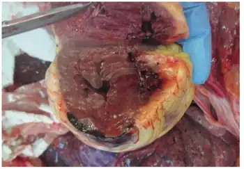 - ↑ Sugiura T, Nagahama Y, Nakamura S, Kudo Y, Yamasaki F, Iwasaka T (2003). "Left ventricular free wall rupture after reperfusion therapy for acute myocardial infarction". Am J Cardiol. 92 (3): 282–4. doi:10.1016/S0002-9149(03)00625-8. PMID 12888132.
