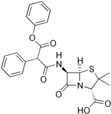 - ↑ Basker MJ, Comber KR, Sutherland R, Valler GH (1977). "Carfecillin: antibacterial activity in vitro and in vivo". Chemotherapy. 23 (6): 424–35. doi:10.1159/000222012. PMID 21771.