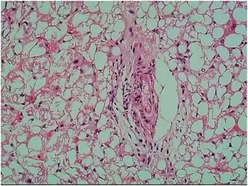 | Staining of liver tissue shows extensive vacuolar degeneration | |