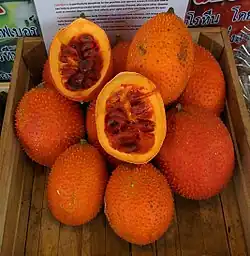 - ↑ Tran, X. T.; Parks, S. E.; Roach, P. D.; Golding, J. B.; Nguyen, M. H. (2015). "Effects of maturity on physicochemical properties of Gac fruit (Momordica cochinchinensis Spreng.)". Food Science & Nutrition. 4 (2): 305–314. doi:10.1002/fsn3.291. PMC 4779482. PMID 27004120.