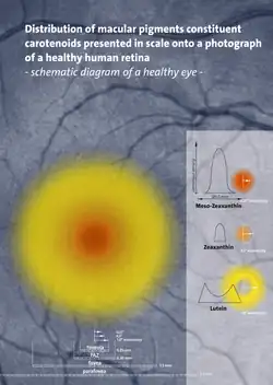 - 1 2 Bernstein, P. S.; Li, B; Vachali, P. P.; Gorusupudi, A; Shyam, R; Henriksen, B. S.; Nolan, J. M. (2015). "Lutein, Zeaxanthin, and meso-Zeaxanthin: The Basic and Clinical Science Underlying Carotenoid-based Nutritional Interventions against Ocular Disease". Progress in Retinal and Eye Research. 50: 34–66. doi:10.1016/j.preteyeres.2015.10.003. PMC 4698241. PMID 26541886.