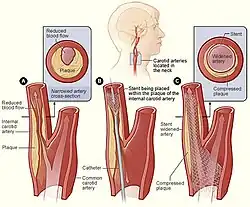 - ↑ Bonati, LH; Lyrer, P; Ederle, J; Featherstone, R; Brown, MM (12 September 2012). "Percutaneous transluminal balloon angioplasty and stenting for carotid artery stenosis". The Cochrane Database of Systematic Reviews (9) CD000515. doi:10.1002/14651858.CD000515.pub4. PMID 22972047.