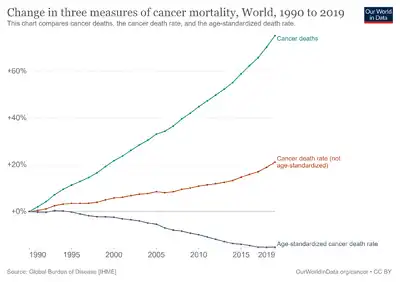 - ↑ "Share of cancer deaths attributed to tobacco". Our World in Data. Archived from the original on 10 May 2018. Retrieved 5 March 2020.