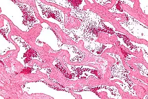 Micrograph of a cavernous liver hemangioma. H&E stain.