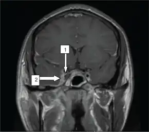 - ↑ 3.0 3.1 3.2 3.3 3.4 3.5 3.6 3.7 3.8 Plewa, MC; Tadi, P; Gupta, M (January 2022). "Cavernous Sinus Thrombosis". StatPearls. PMID 28846357.