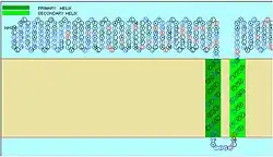 • DIME Motif: This motif is a completely conserved region found in all orthologs of this protein and is found within DUF607 and between the transmembrane domains. The DIME motif is a sequence of 23 amino acids that has the sequence: QxGxLAxLTWWxYSWDIMEPVTYF, where letters correspond to actual amino acid residue and "x" represents amino acids that are not conserved within this sequence. Throughout the entire CCDC109B protein there are no other conserved amino acid sequences that are greater than three amino acids in length.[6] The DIME Motif has a hypothesized role in calcium transport and is most likely essential in DUF607.[7]