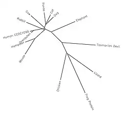 Phylogenetic Tree of CCDC109B Orthologs. Length between organisms is related to how closely related they are. Shorter length correlates to more conservation.