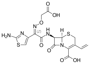 Common side effects include diarrhea, abdominal pain, and nausea.[2] Serious side effects may include allergic reactions and Clostridium difficile diarrhea.[2] It is not recommended in people with a history of a severe penicillin allergy.[7] It appears to be relatively safe during pregnancy.[3] It is in the third-generation cephalosporin class of medications and works by disrupting the bacteria's cell wall resulting in its death.[2]