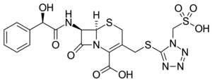 • O=C2N1/C(=C(\CS[C@@H]1[C@@H]2NC(=O)[C@H](O)c3ccccc3)CSc4nnnn4CS(=O)(=O)O)C(=O)O