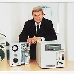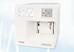 The impedance method used in the Celloscope analyzer has been further developed to allow counting also of leukocyte subgroups.[2][3] In addition to the cell counts, modern hematology analyzers are also capable of reporting parameters related to cell size, hemoglobin concentration, as well as a range of calculated parameters, for a complete blood count (CBC). These analyzers were initially intended to be used in hospital laboratories, as they required a skilled staff and a high sample load to justify their relatively high cost, however, with the increasing need for decentralized healthcare, the demand for simpler analyzers emerged and prompted the development of benchtop cell counters that could be used in a near-patient clinical setting with a minimum of training.[2][16][17] In 1969, Erik Öhlin founded Swelab Instrument AB (today, Boule Medical AB[18]), and later, the Swelab AutoCounter AC-series was launched to meet the needs of the smaller clinical laboratories.