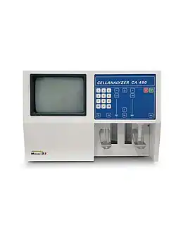 The cell counters of that time used LED screens for result review. In 1982, Medonic AB, another Swedish company with focus on hematology, was founded.[19] The founders, Ingemar Berndtsson and Abraham Bottema, both had a long history and experience in hematology, clinical chemistry, and blood banking engineering.[20][21][22] In 1985, Medonic AB launched the Cellanalyzer CA 480 system, its first own-developed cell counter with a built-in display that also showed the cell histograms.[23] When computers began to be incorporated into the analyzers, other brands, like the Swelab analyzers, also came with a display. Both targeting the smaller clinical laboratories, Swelab Instrument AB and Medonic AB were competitors on the decentralized hematology testing market.[24][25][26] In the late 90s, both Swelab Instrument AB and Medonic AB were acquired by Boule Diagnostics AB.[27][28] The company has kept the parallel brands and the analyzers are still manufactured from its facilities in Stockholm, Sweden and supplied under the Swelab and Medonic trademarks for the decentralized hematology testing market.[29][30][31][32][33][34]