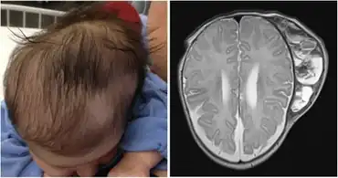 The diagnosis is not based on any test, rather the presented bulge on the individuals head[1]