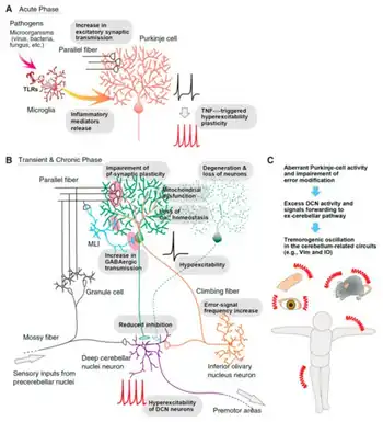 - ↑ Parvez, Md Sorwer Alam; Ohtsuki, Gen (March 2022). "Acute Cerebellar Inflammation and Related Ataxia: Mechanisms and Pathophysiology". Brain Sciences. 12 (3): 367. doi:10.3390/brainsci12030367. ISSN 2076-3425. Archived from the original on 2024-02-14. Retrieved 2024-03-29.