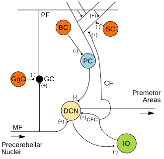 - ↑ Witter L, Canto CB, Hoogland TM, de Gruijl JR, De Zeeuw CI (2013). "Strength and timing of motor responses mediated by rebound firing in the cerebellar nuclei after Purkinje cell activation". Frontiers in Neural Circuits. 7: 133. doi:10.3389/fncir.2013.00133. PMC 3748751. PMID 23970855.